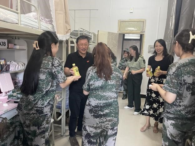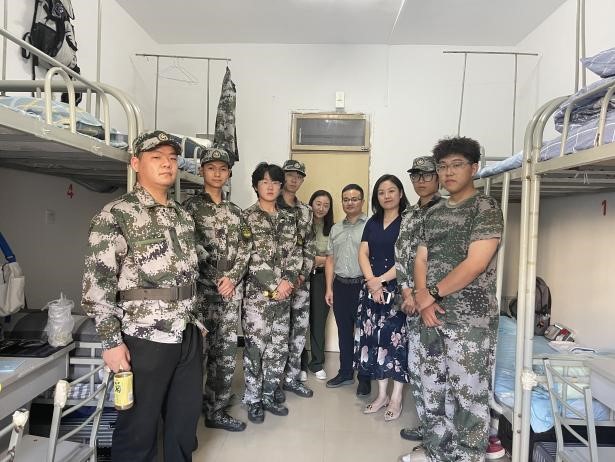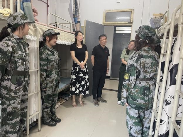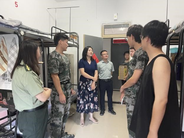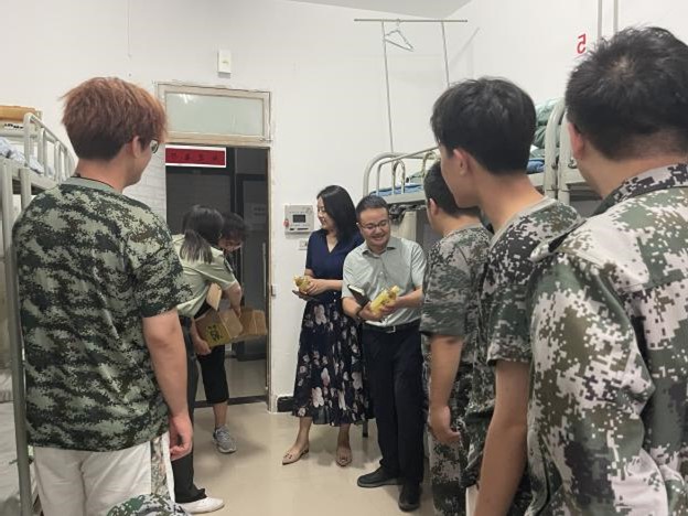 在走访宿舍的过程中,学院领导与同学们进行了亲切的交流,了解同学们来校后的感受,对学校的印象和适应情况等。同时学院领导对新生的到来表示热烈欢迎,希望他们能尽快适应大学生活,养成良好的学习生活习惯,做好学习规划。此外,也希望同学们能够在此次军训中锤炼体魄、磨炼意志,保持良好的内务习惯。