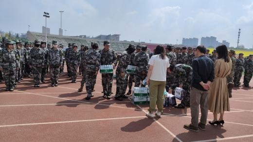 学院领导为教官和参训学生发放了慰问品,鼓励同学们在军训的后半程持续努力、不断拼搏,用更加昂扬的姿态迎接未来的学习和挑战。