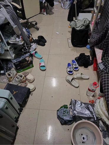 除优秀宿舍外,也有个别宿舍情况不佳:鞋物摆放较为杂乱、洗漱台较脏、门口垃圾摆放较多、清理不及时等,希望同学们引以为戒、注意整改。后续如若持续查宿表现较差,我们将在结果公布中对相应宿舍进行通报。