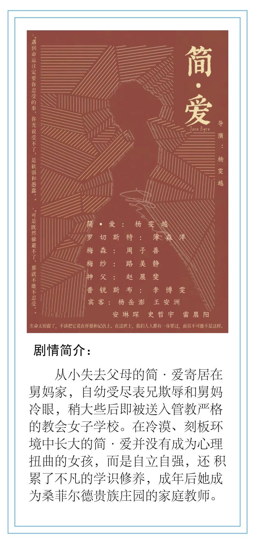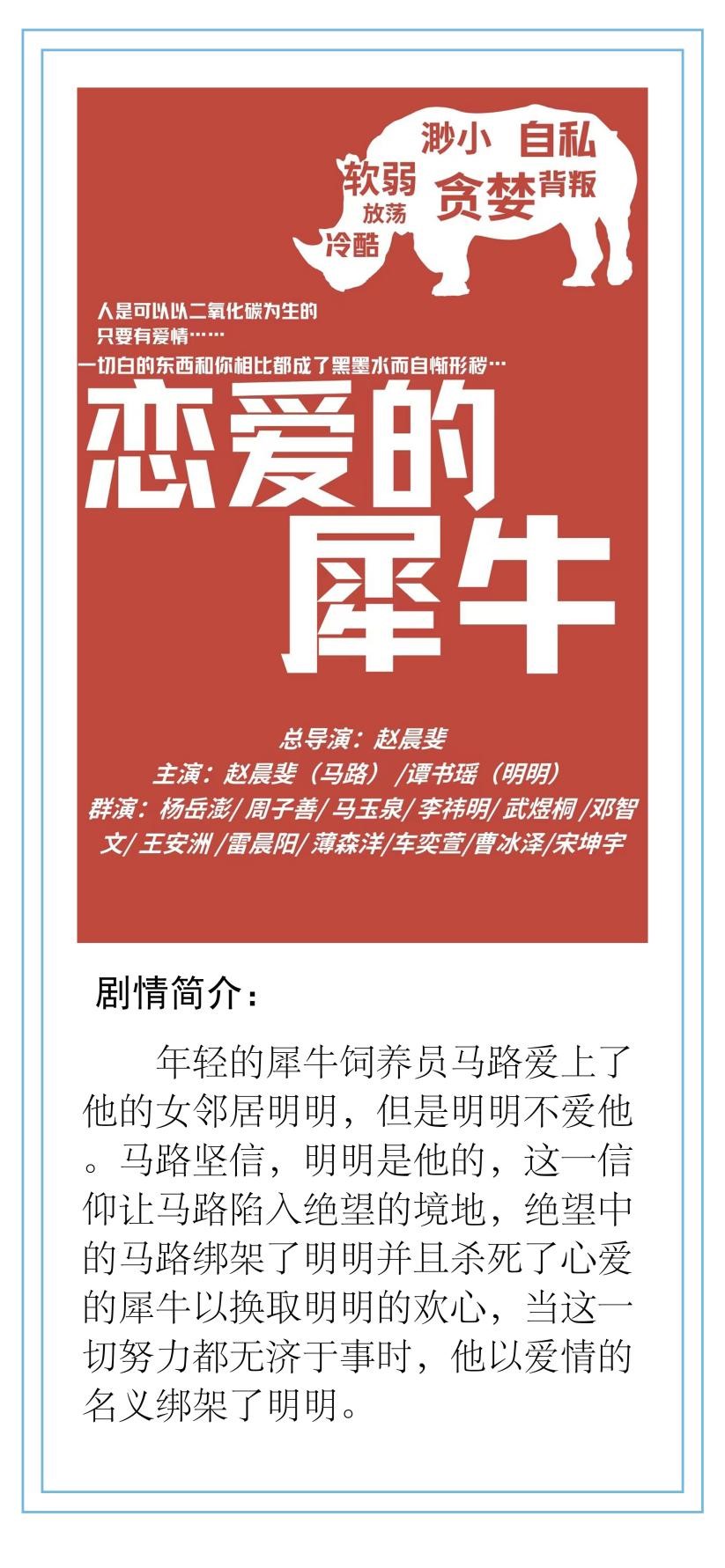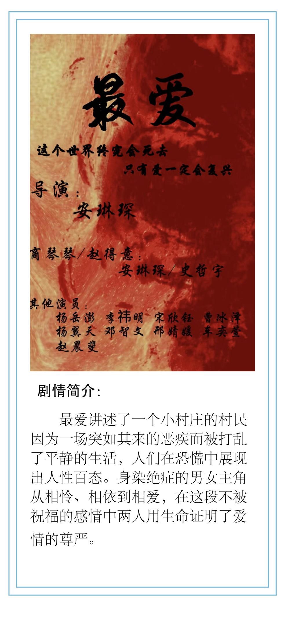 本学期即将结束,我们的优异作品展示也即将进入尾声。本期我们将展示表演专业的优秀作品,表演专业本学期一方面将经典话剧片段改编搬上舞台,一方面通过镜头来记录他们眼中的人生百态。他们的作品展示将以剧照和微电影的形式呈现,希望同学们在领略艺术之美的时,能激发自身的学习与创作的激情与兴趣~~
