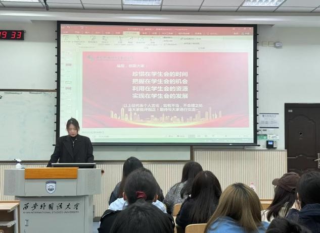 研究生兼职辅导员、第14届学生会主席团成员、第24届研究生支教团成员连梦源作为主讲人为学生会全体干部进行培训。
