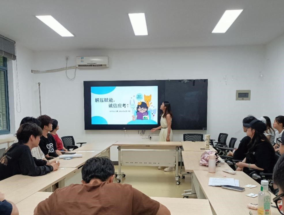 为树立良好的班级风貌,营造浓厚的学风氛围,6月19日,动画2203班在公寓楼党团工作站1B104举办了以“解压赋能,诚信应考”为主题的班团文化进公寓活动。邀请了动画2203班班主任张宛云老师和辅导员刘青清老师参加本次活动,会议由团支书阮梦梦主持,全体同学参与。