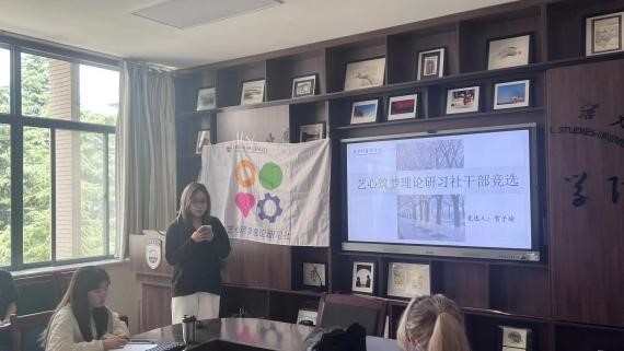 艺心筑梦理论研习社于6月27日在JE301召开了换届竞选大会。指导老师刘青清、社团负责人及全体社员共同参加了本次会议。