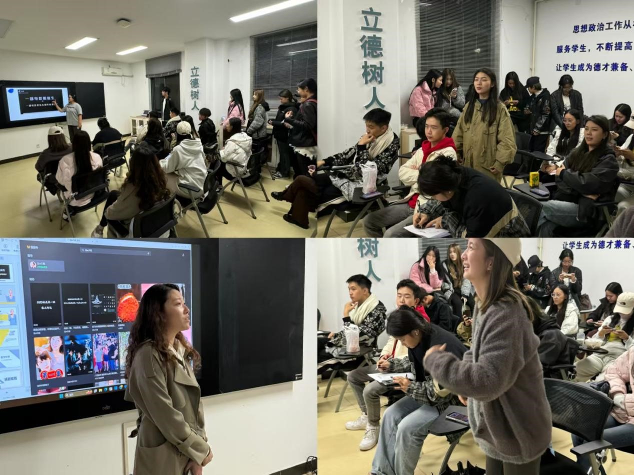 朋辈经验分享环节,王雅琦老师为大家播放了2020级学长学姐学习和拍戏的日常大学vlog。班级同学通过对学长学姐学习成长经验的学习,大家更加明确大学四年应该学什么、怎样学习、如何建设班级等。王雅琦老师总结讲话,她强调了班级凝聚力的重要性,班级凝聚力是一个班级发展最重要的力量,班级文化是班级凝聚力和向心力的体现。她要求班级成员间要互帮互助,构建班级友爱和谐氛围;坚守纪律底线,向优秀学子看齐;明确个人和集体目标,增强集体意识;珍惜荣誉,丰富班级活动,努力打造优秀班集体,为个体的发展营造健康向上、友爱团结的良好育人环境。