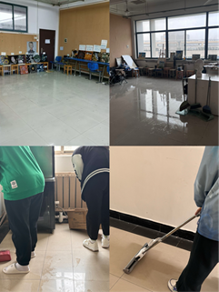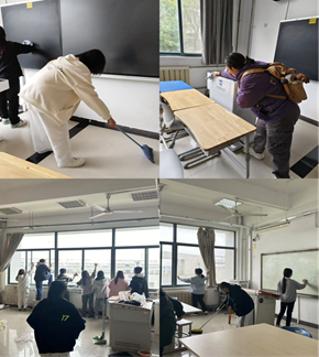 在文体馆附近,同学们手持扫帚、簸箕等工具,对周边的环境卫生进行了彻底的清理。他们分工合作,有的负责捡拾地面垃圾,有的负责清扫落叶,经过他们的努力,文体馆周边的环境焕然一新,为师生们提供了一个更加整洁、舒适的活动空间。在4B学生公寓,同学们重点对公寓内的公共区域进行了清洁和维护,清理饮水机、清理小广告、清扫楼道、擦玻璃、开展垃圾投放劝导等,确保公寓内的环境整洁有序,共同营造了一个温馨和谐的居住环境。在学院固定教室,同学们积极参与到了教室的清洁和整理工作中,他们扫地、拖地、擦拭桌子与黑板、整理画架书籍等,确保教室内的环境整洁有序。