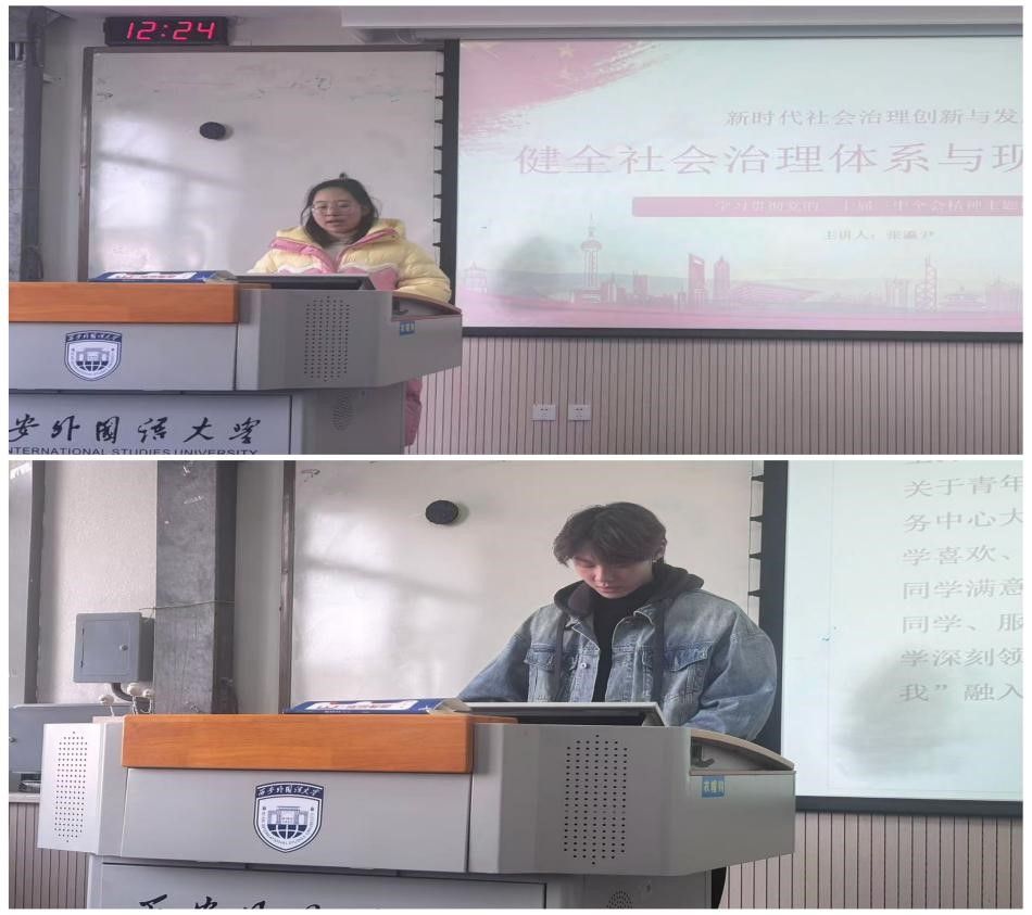 学生会主席团成员张瀛尹带领大家学习了《贯彻党的二十届三中全会精神联学》内容,指出学生会应不断完善提案制度,为同学们做实事,常态化开展服务活动,建设积极向上的校园文化环境。