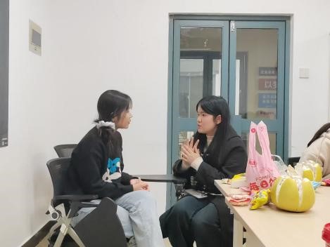 日本文化经济学院朝阳志愿者队队长梁晶晶讲述了团队主要志愿活动经历,着重分享在三下乡活动中的经验与收获。副队长车兰兰从活动组织与管理的角度进行了补充说明。随后,叶俊怡系统介绍了艺路阳光志愿者队的发展历史、活动主题与类型。活动部部长马佳欣与教学组副部长赵杰菲依次介绍了部门特色活动和活动执行开展中的挑战与应对策略。在自由交流环节中,两队成员就志愿服务过程中的工作难点和重点、活动形式创新等话题展开深入讨论。志愿者们各自分享了工作经验与创新思路。