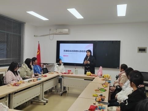 艺路阳光志愿者队与日文学院朝阳志愿者队共19名志愿者于1B104共同举办经验交流分享会,携手探索志愿者工作的新思路与新方法,为今后更好地开展志愿活动奠定坚实基础分享会由艺路阳光志愿者队队长叶俊怡主持。