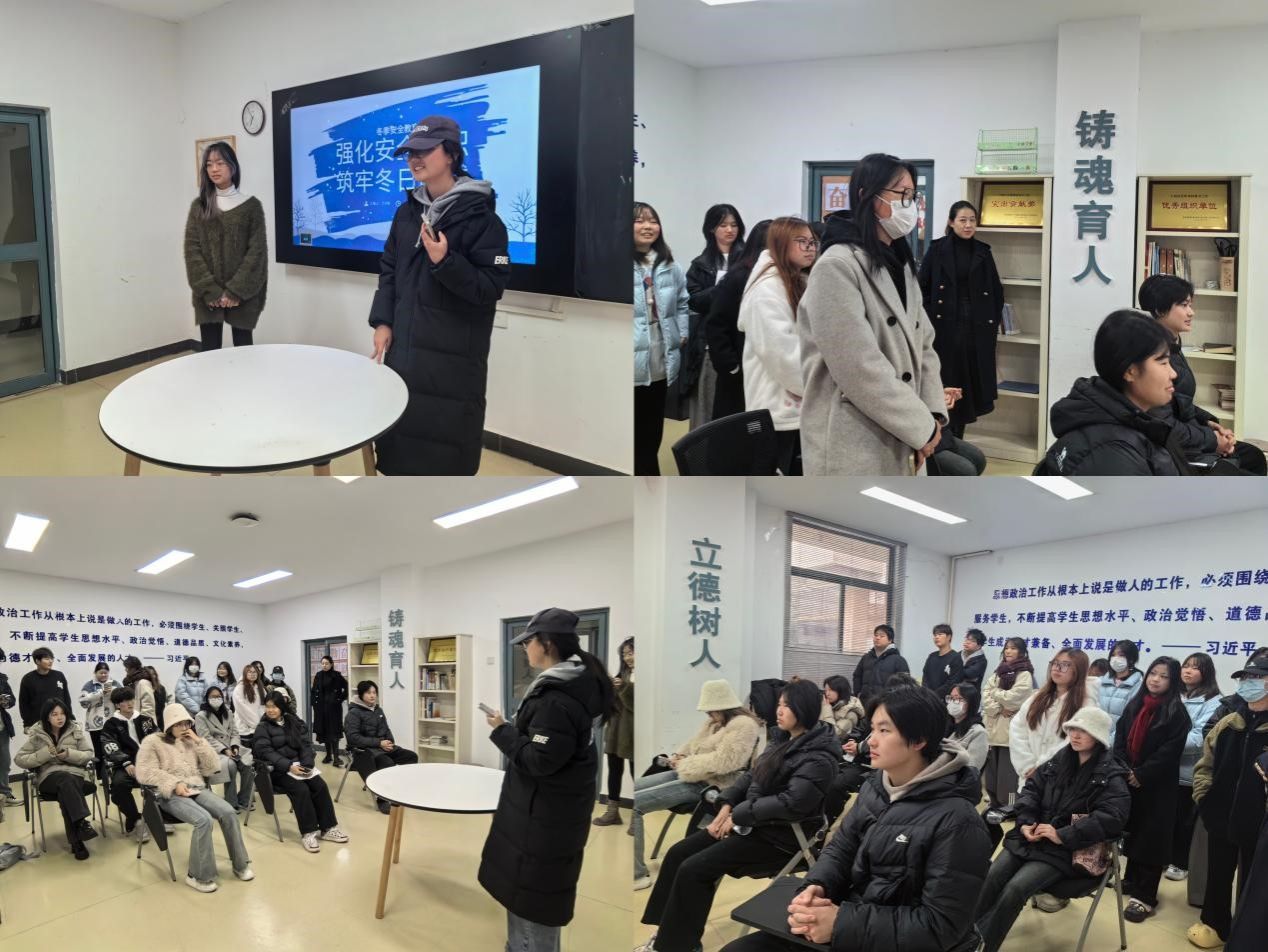 为提升同学们的安全防范意识和自我保护能力,12月11日,视传2403班在思政进公寓党团工作站1B03召开“强化安全意识,筑牢冬日防线”安全教育主题学习研讨会。本次活动由班长丁子怡主持,班主任韩冠南与视传2403班全体同学参与本次活动。