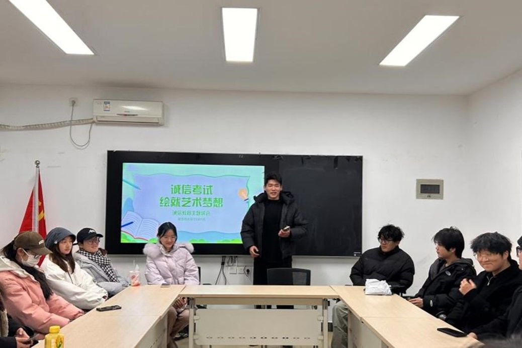 班长朱嘉何首先介绍了班会目的,列举了在专业考试、比赛、证书考取中可能出现的作弊行为,帮助同学们明确了诚信考试的是非观,后又宣读了学校考试相关的作弊违纪处理办法,列举了作弊对心理健康、个人形象、学风班风、未来发展的严重影响,引导同学们要自律自爱、做文明诚信的大学生。在交流分享环节,学习委员万如介绍了个人的学习经验,从灵感收集、构思规划、搭配布局、反馈改进等多方面讲解了应试技巧,梳理了应考创作时的思路和技术手段,让同学们积极面对考试压力与挑战。随后,朱嘉何带领全体同学做了诚实考试的郑重承诺。