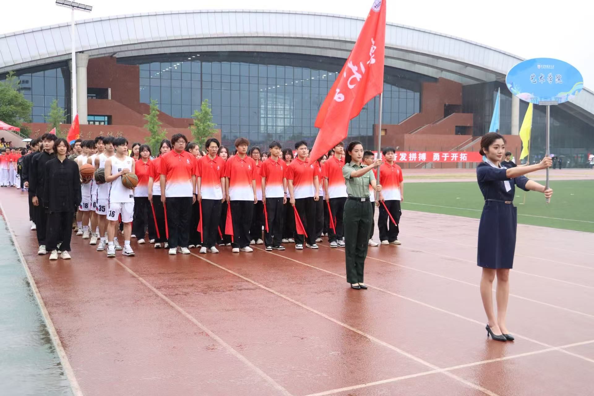 篮球健将们率先登场,五位在 2025 年校篮球联赛男子组斩获亚军的代表,身着白色球衣,在绿茵场上展开了一场力量与技巧的视觉盛宴。篮球在他们手中仿佛被赋予了灵魂,穿梭、腾挪、旋转,每一个动作都精准无误,每一次运球都伴随着风的呼啸。在他们矫健的身姿中,我们看到了艺术与体育的完美融合,那是速度与激情的碰撞,是对青春的致敬。