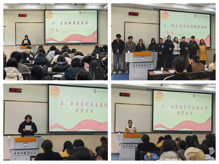 新团员代表秦嘉斌和优秀团员代表谢尔甲先后发言,分享加入共青团的光荣与喜悦。他们承诺将以团员标准严格要求自己,践行誓言,努力成长为有理想、敢担当、能吃苦、肯奋斗的新时代青年。