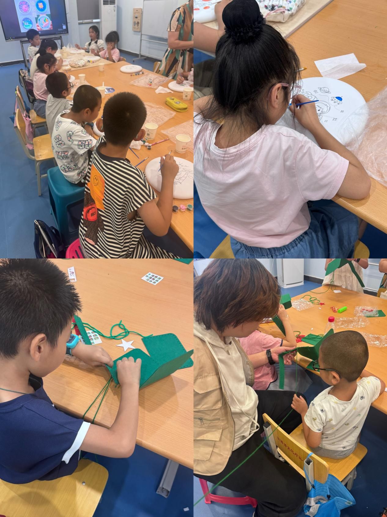 一周时光里,艺术成为连接彼此心灵的魔法纽带。实践队员们和小朋友们一起指尖生花。手工课上,彩色卡纸在小手中跃变为憨态可掬的动物;钻石画的亮片折射出专注的光,孩子们屏息粘贴的模样,是最动人的剪影;漆扇文化体验课上,传统工艺的韵味顺着稚嫩笔触流淌,每一把扇子都藏着独一无二的灵魂;手工红军帽制作时,小小的手掌捧着亲手缝制的成果,眼中闪烁的,是对英雄的无限崇敬。