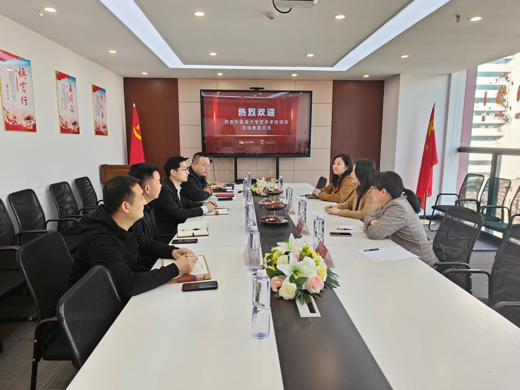 陈永升对母校领导老师的来访表示热情欢迎,介绍了动点控股集团有限公司的发展历程、团队结构、业务板块等基本情况;阴斌斌介绍了其负责的公益业务板块《造梦公益》的基本情况和国际公益组织项目招募要求,希望后期能从我校招募一批国际组织实习志愿者服务于非洲公益项目;王子龙介绍了其负责的动画项目概况和实习生需求情况。