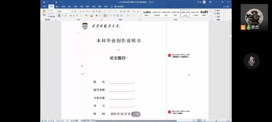 过程中介绍了论文的目录内容,对论文创作的过程进行了梳理,最后对论文的参考文献标注,以及如何请教指导老师问题,还有写论文如何更规范并提出了自己的意见,还有答辩的过程和答辩时的注意事项以及容易出错的部分进行强调,帮助同学们更快熟悉论文的创作和答辩的过程,对同学们的疑问做出了解答,并祝愿同学们都顺利的完成论文。