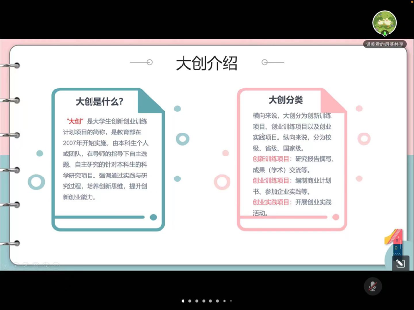 19日,在许黎雯老师的主持下,会议以“优秀学生专业分享学习及作品分享会。会议上,各位学长学姐向同学们分享经验以及答疑解惑。米娜敏老师、侯小春老师、辛盈学姐向同学们介绍了大学生创业的相关知识。