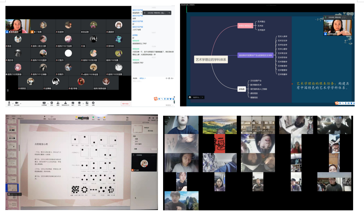 线上教学总体情况:视觉传达设计专业全体教师以最饱满的热情投入到线上教学活动中,每位教师做到提前联系学生,开展授课预备会,能够与所带班级班干部及时沟通,了解每个班的情况,尤其是因防疫被暂时隔离的同学,做到一对一的关心与关注。线上教学开展顺利,学生能按时进入教学平台,与授课教师良好沟通,按时完成课堂练习,教师能够认真负责对学生的作品进行点评与修改。课下,教师通过线上沟通平台给学生推荐扩展阅读,发挥线上教学的优势。