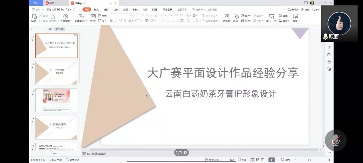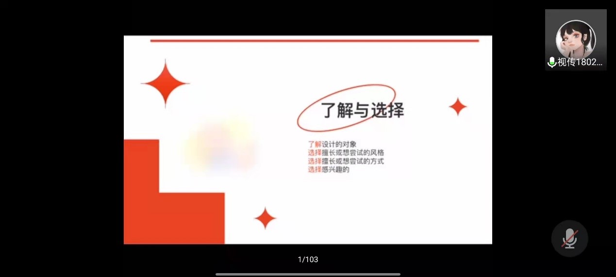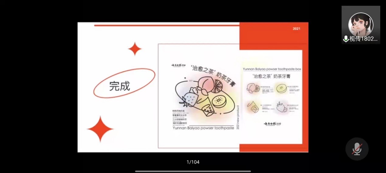 2018级视传专业徐若茜分享全国大学生广告艺术大赛获奖作品云南白药IP设计心得和经验以及参加比赛注意事项,并对作品的设计过程做了详细的讲解。