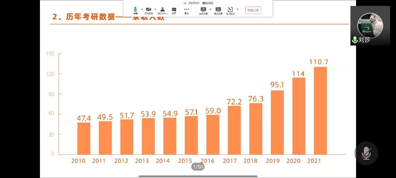 刘莎学姐对考研的相关事宜以及规划做出讲解,让同学们充分了解考研形式,提早准备考研相关书目,以及根据自己的特点选择合适的院校,最后对同学们提出的考研疑问经行解答。