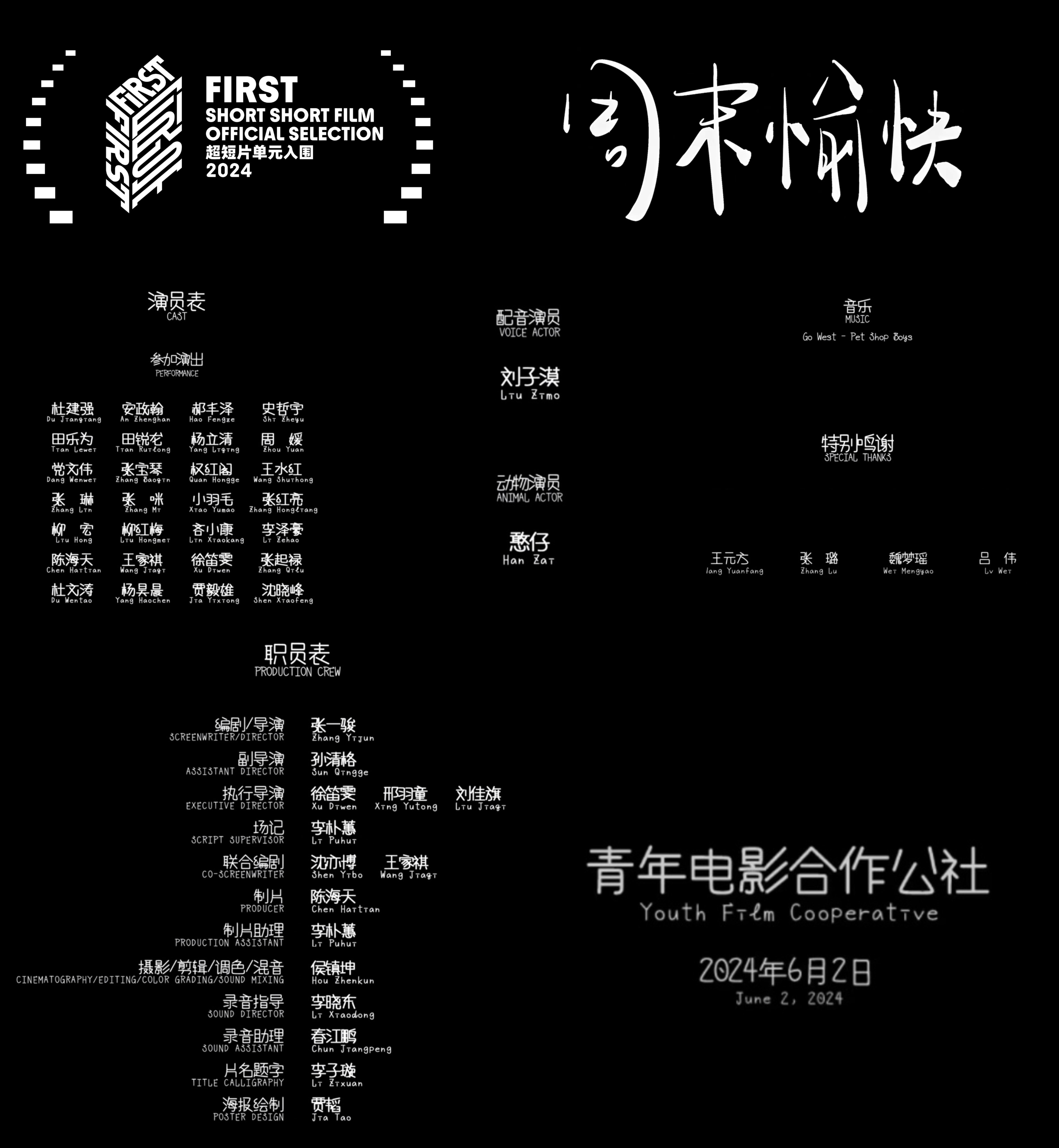 影片《周末愉快》将爱与告别融入其间,以孩童旁白娓娓道出人间百态。评审推荐语写道:娓娓道来人间百态,车停车起,视角流转,有趣且充满爱意的人生告别。