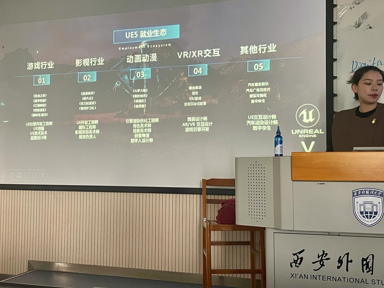 随后,熙凤老师就UE 人才的需求领域与能力要求做了详细介绍,随着 UE 虚幻引擎的广泛应用,相关人才的需求也日益增加。针对同学们关心的就业问题,她指出:对于想要进入游戏、影视大厂的毕业生来说,首先要关注各大厂的校招信息,及时了解招聘的岗位和要求。其次,要注重自己的专业技能和综合素质的提升,通过参加实习、项目实践等方式,积累丰富的经验。在面试过程中,要充分展示自己的能力和潜力,同时要对行业有深入的了解和认识,表现出自己对行业的热爱和热情。