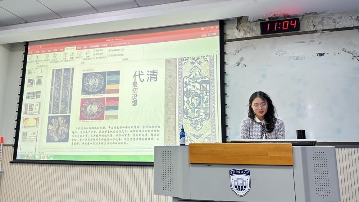 21级学生胡雨薇为同学们介绍了“米兰设计周”“未来设计师”“蓝桥杯”等专业竞赛赛事,并分享了自己的获奖作品、设计灵感、参赛心得等。