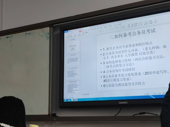 本次讲座让同学们了解各类公职类考试的基本特点、考试时间和考试题型,坚定了我们的学习信心,了解了学习备考的方法。同学们纷纷表示参加这次讲座收获很多,在以后的学习中做好学业规划,努力学习,完成学习计划和任务。