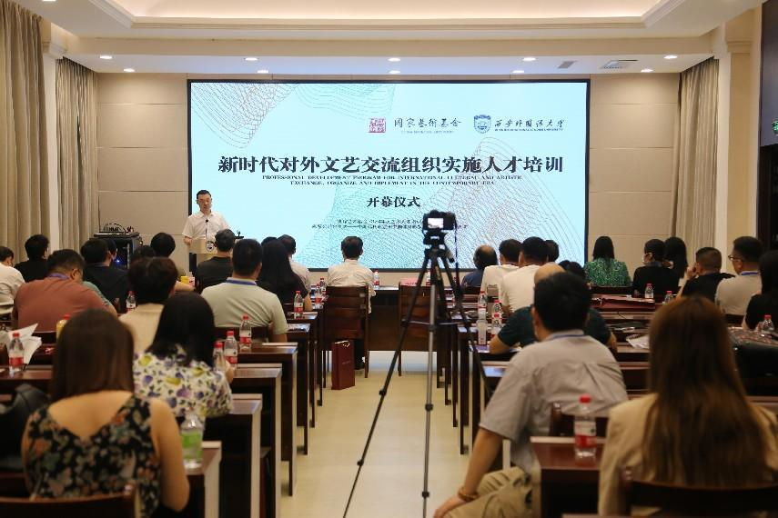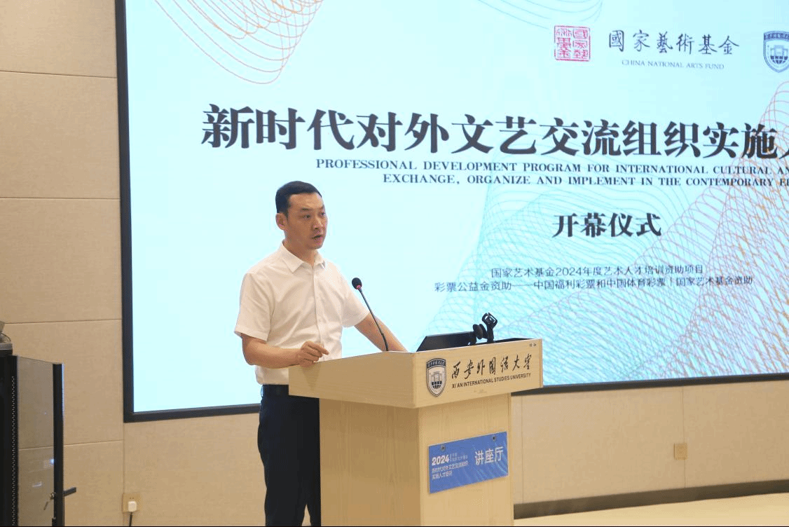 2024年7月15日上午,国家艺术基金2024年度艺术人才培训资助项目“新时代对外文艺交流组织实施人才培训”开班仪式在绅士漫画 雁塔校区中华文化体验中心举行。