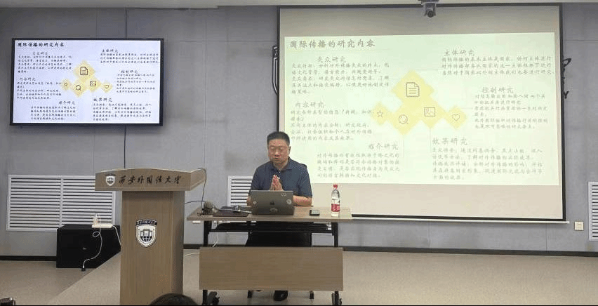 本次授课中,李鹏教授主要从国际传播的理论基础、国家传播的研究方法、跨文化传播的相关案例、国际传播的效果研究、国际传播中的文化折扣与冲突与解决路径、国际传播中民族文化的独立性六方面展开了本次授课。