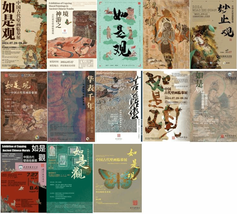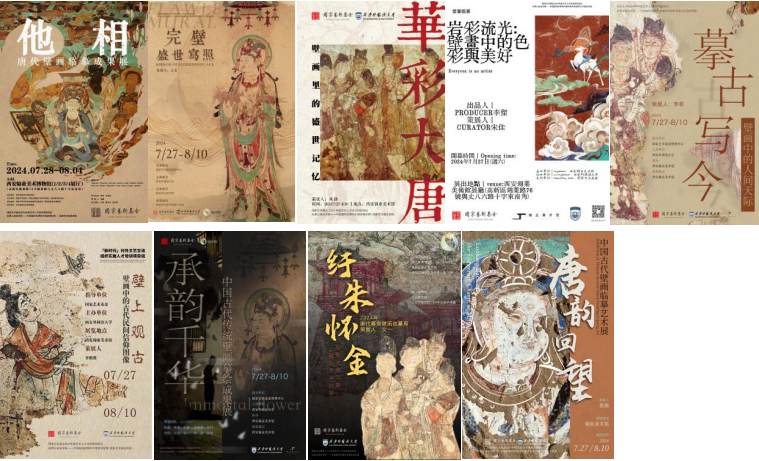 联合陕西历史博物馆等相关单位前期制作的唐代壁画复摹成果,自觉接轨国家对外文化传播要求和国际文化交流需求,同国家艺术基金人才培养项目“新时代对外文艺交流组织实施人才培训”学员培养目标、能力要求相一致。项目学员在数十件唐代壁画复摹品等前期成果的支撑下划分出三个小组,围绕壁画主题、画面元素、其间传达的文化韵味与精神诉求等角度为其设计海报、撰写方案,最终完成展览方案三套、展览海报二十八张。