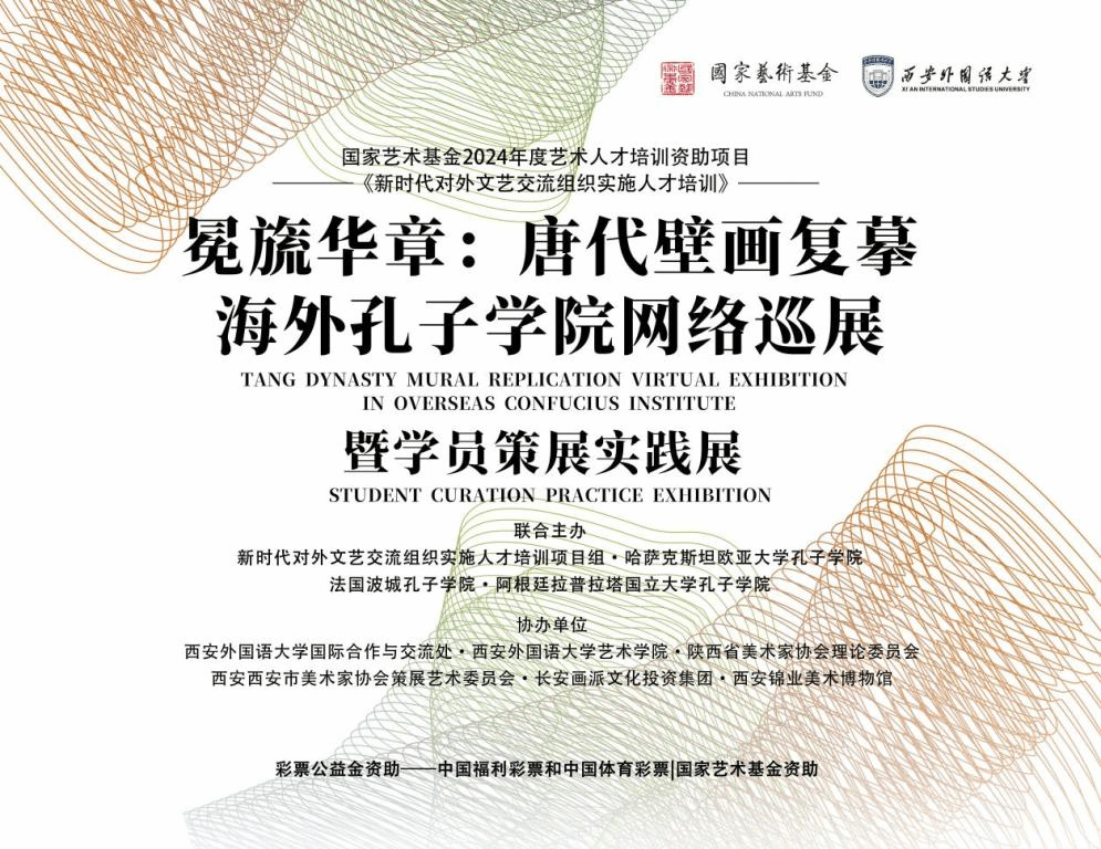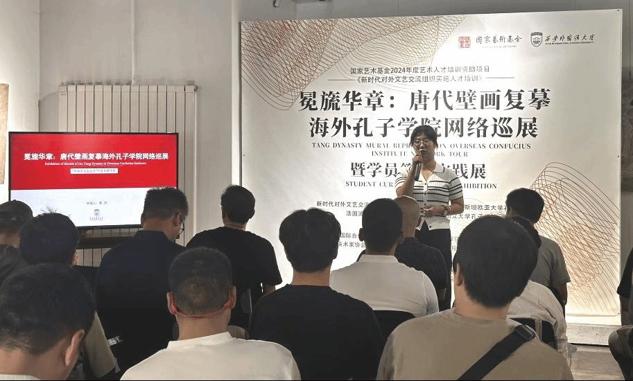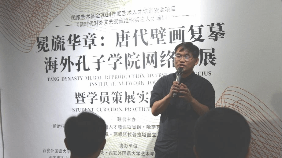 2024年7月28日上午,国家艺术基金2024年度人才培养资助项目“新时代对外文艺交流组织实施人才培训”在西安锦业美术博物馆顺利举办“冕旒华章:唐代壁画复摹海外孔子学院网络巡展·暨学员策展实践展”,此次展览由新时代对外文艺交流组织实施人才培训项目组、哈萨克斯坦欧亚大学孔子学院、法国波城孔子学院和阿根廷拉普拉塔国立大学孔子学院联合主办,由绅士漫画