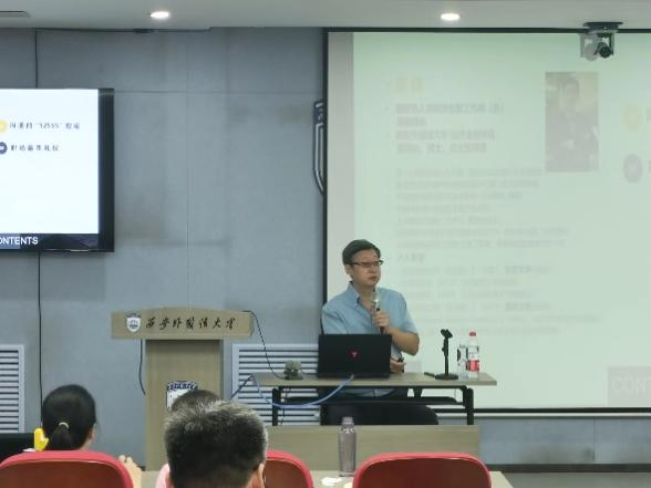 国际合作与交流处处长景楠主讲。课前,项目班主任田熠博士对授课专家景楠的专业方向和学术背景向学员作以介绍。