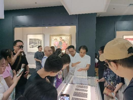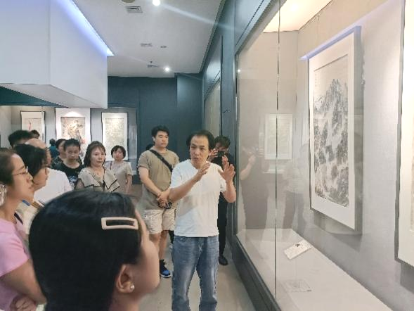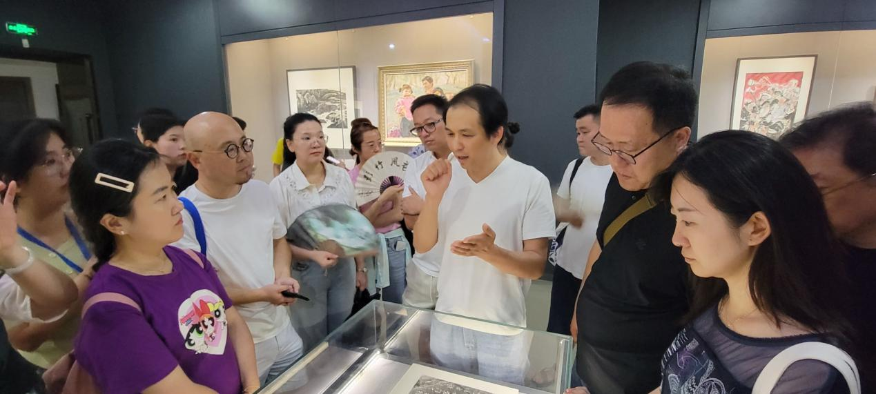 考察过程中,白林坡老师基于陕西省美术博物馆在展活动“崇德尚艺”——首届陕西省美术博物馆捐赠与收藏荣誉展(中国画),为学员介绍了展览的背景、策展流程以及展览过程中所需考虑的细节。他强调,要充分重视展览平台,自觉打造展览品牌,注重展览场馆收藏、展示、交流、研究、互动等多元功能的有效发挥;要将展览展示的预期目标和价值定位自觉同美术馆在高质量收藏、高水平利用、高品质服务上下功夫,努力打造新时代人民群众欣赏美术佳作、提升文化素养的艺术殿堂的办馆目标相契合;要做到展品的活化演绎,围绕策展逻辑打造展品展示谱系,形成突出时代气象、艺术特色和创新品质的展览风貌。