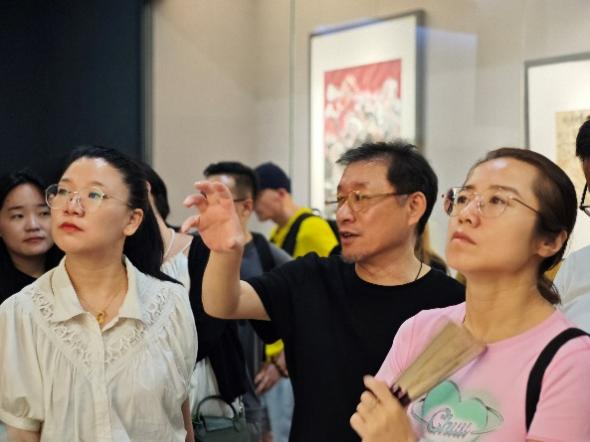 白林坡老师以陕西省美术博物馆为原点,介绍了场馆在设展览的空间布局与动线规划,提醒学员在展览策划过程中要充分考虑展馆的结构、布局以及展览空间的有效利用,自觉增强展览的空间感与立体性,充分发挥艺术作品的独特感染力与不朽魅力。随后,白老师带领学员完整体验展览动线,并就每件展品进行具体说明,他指出,美术馆的展藏体系,要做到作品的代表性、经典性与艺术性兼具,深入挖掘藏品背后的故事,在彰显藏品本体价值的同时放大其附加价值。白老师对展品的来源进行介绍,他提出,美术馆的藏品来源不外乎接收捐赠、征集购买、以展代藏等形式,在策展实践中,要重视对展品来源的梳理,完善展品的说明介绍方式,对每件展品的具体内涵了然于心。白老师结合展出的具体画作,对作品的创作背景、技法、风格等进行专业解析,认为笔墨的背后是艺术家们对民族文化的自信与自省,是对生活现实的激情与温情,更是对理想的渴求和艺术的虔诚,高度与深度兼备,他以此提醒学员在策展实践中要注意对展品的甄别,选择具有时代性、人民性、艺术性的优秀艺术作品。