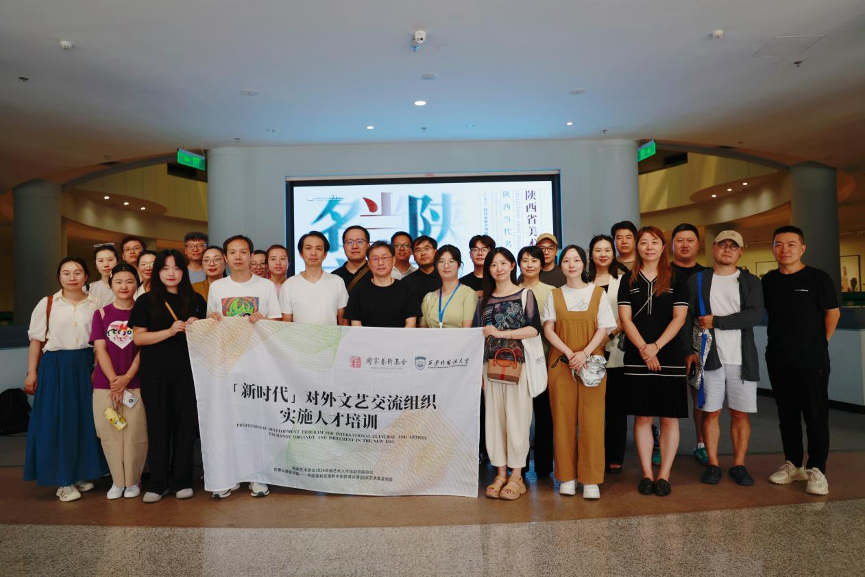 李杰老师在参观过程中对相关展品向学员进行了专业的解读和拓展,并对本次考察活动进行总结。他强调,要珍惜本次来之不易的学习交流机会,认真汲取优秀展览的成功经验,自觉与本次培训的培养目标和结业要求相对接,做出内涵明确、流程具体、易于操作、特色鲜明、价值重大的最终成果。讲解结束后,学员根据个人的兴趣自行参观,并同白林坡老师合影留念,本次陕西省美术博物馆考察交流活动圆满结束。