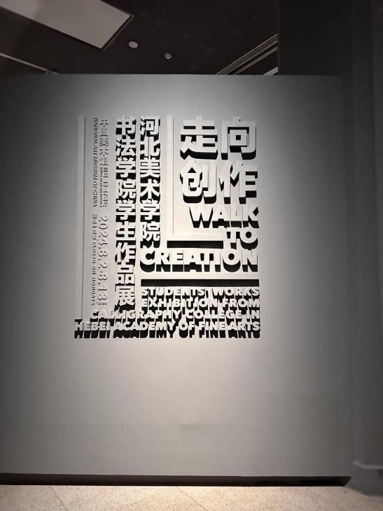 “走向创作——河北美术学院书法学院学生作品展”是河北美术学院主办、体现学院自身对书法专业思想与态度的展出。该学校教师和学生的158件优秀作品在馆内被呈现于观众面前,大家可以欣赏到篆、隶、楷、行、草各种书体。此次作品展不仅是河北美术学院书法专业近十年来的教学成果展示,更是学院书法专业教育历程的概括和梳理。