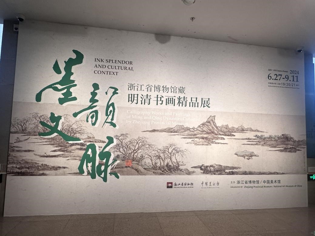 “墨韵文脉——浙江省博物馆藏明清书画精品展”由浙江省博物馆和中国美术馆主办,展出了浙江省博物馆所收藏的明清精品书画及文物70件,如:清代任熊的《花鸟册》、明代沈周的《湖山佳趣图卷》等。这些名家佳作反映了明清时期书画艺术的丰富多样,体现出浙江鲜明的地域特色与深厚的文化积淀。