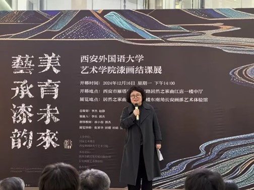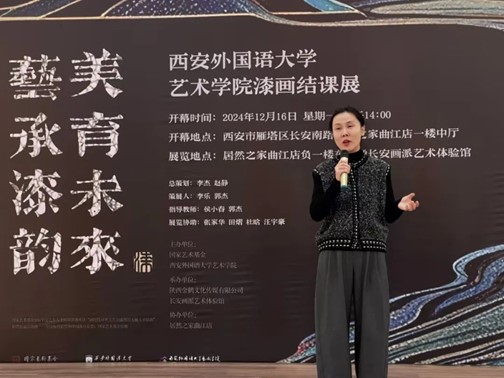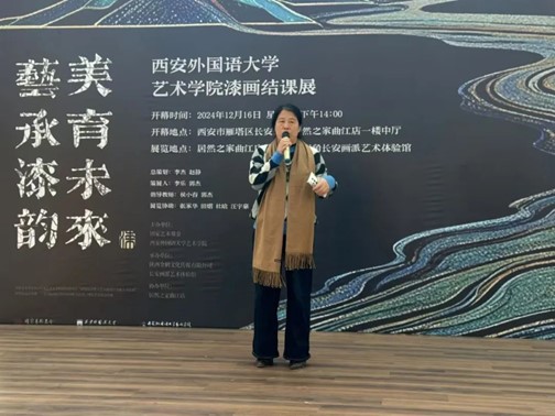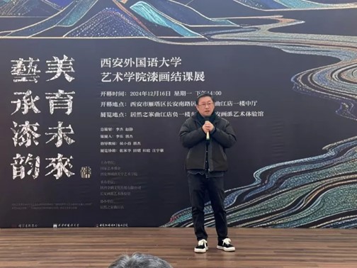 漆画结课展在长安画派艺术体验馆举办。此次展览是由郭杰副教授率领的漆画创作课程团队以本科课程为基础,深入挖掘中国传统美术漆画的精髓,结合新时代文化语境,致力于当代漆画的创新设计与表现。同学们深入研究漆画的历史与技法同时积极吸收现代艺术理念,将传统技艺与现代表现手法相结合,创作出一系列具有时代感的作品。这些作品不仅展现了漆画的独特魅力,也体现了艺院学子对传统文化的深刻理解和创新精神,同时也是一次传统文化创新与国际传播教学推进的展示。